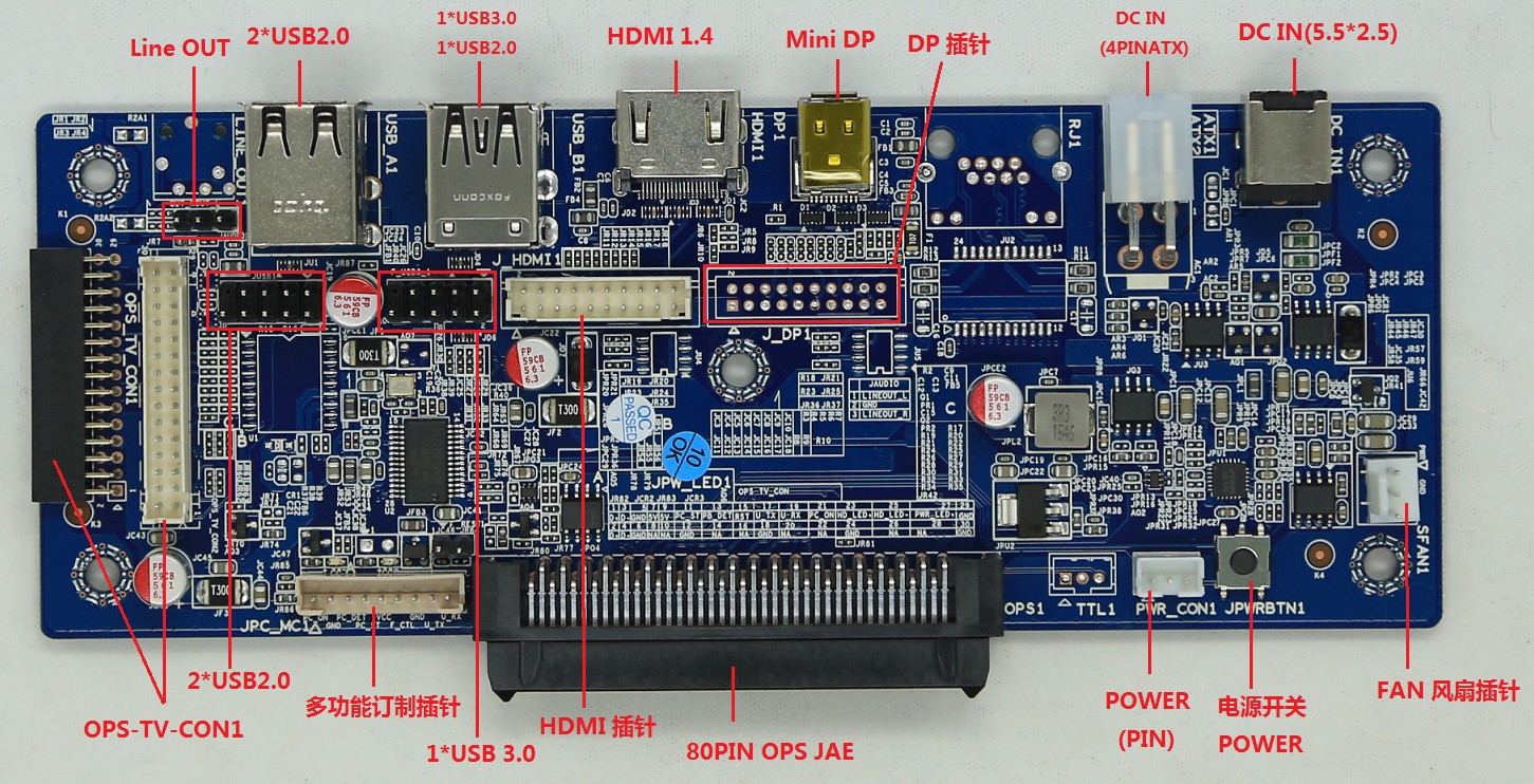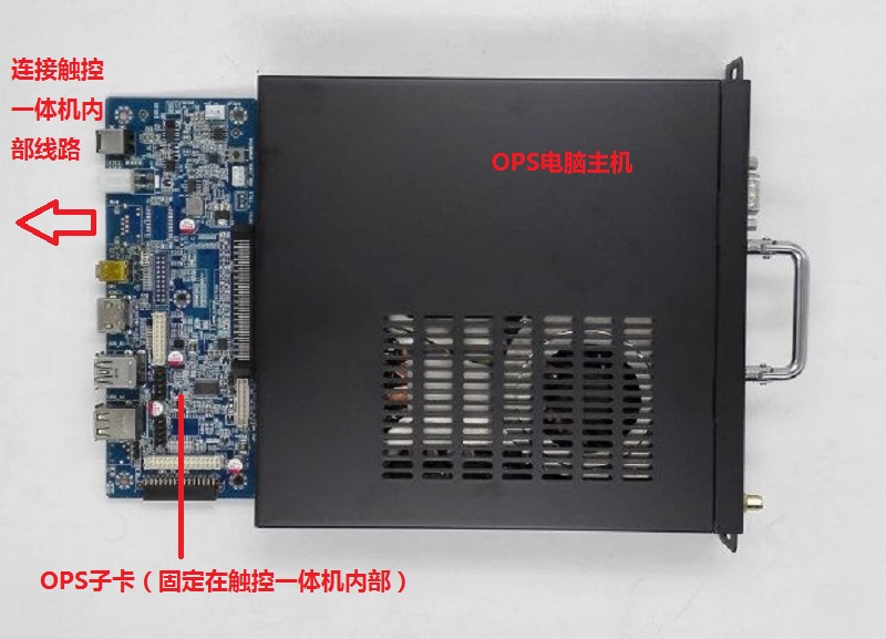 OPS子卡,也叫OPS轉接卡、OPS轉接板、OPS擴展卡,按照 INTEL(Open Pluggable Specification)開放式可插拔規范生產,是將OPS電腦與一體機、電視機的內部線路進行連接的一個橋梁,可以將一體機或電視機內部電源,通過OPS JAE接口提供給OPS電腦主機,同時將OPS電腦的HDMI、DP、Audio、USB、COM、開/關機等信號通過OPS JAE接口與觸控一體機的液晶屏驅動板、喇叭、觸摸框、開關等部件進行對接,通過拔插即可實現觸控一體機、液晶電視機與OPS電腦主機之間連接使用!