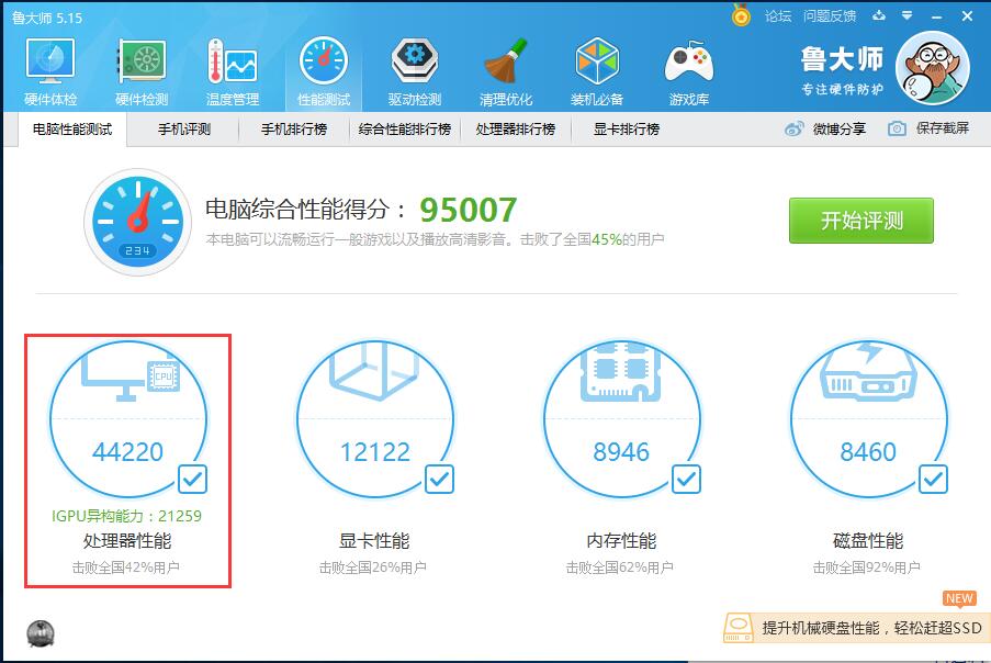 測試軟件:魯大師5.15版本